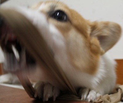 moca よ、それは食い物じゃないって言ってるじゃんか・・。噛むのは噛む用のをあげたじゃん。歯磨き効果もあるっていうヤツを。いや、それも数分で壊した、。お前は・・・。